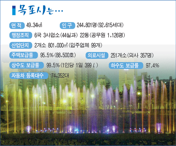 ÇѶ§ Àü±¹ Á¦2ÀÇ Ç×±¸µµ½Ã·Î ¸í¼ºÀ» ³¯·È´ø ¸ñÆ÷Ç×. Áö±ÝÀº ¾à°£ ¼è¶ôÇß´Ù´Â ÁöÀûÀ» ¹Þ°í ÀÖÁö¸¸, ¸ñÆ÷½Ã´Â dzºÎÇÑ ¹®È¤ý¿¹¼ú¤ý¿ª»ç¤ýÀÚ¿¬ÀÚ¿øÀ» Ȱ¿ëÇØ µ¿ºÏ¾Æ ÇØ¾ç°ü±¤ Á߽ɵµ½Ã·Î ºÎ»óÇϰڴٴ ÇÁ·ÎÁ§Æ®¸¦ ÃßÁøÇϰí ÀÖ´Ù. ¹Ù´Ù¸¦ ¹è°æÀ¸·Î ÇÑ ¸ÚÁø ¾ß°æµµ °ü±¤µµ½Ã·Î °¡´Â ÇϳªÀÇ ÀÚ¿øÀÌ´Ù.