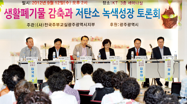 ¡®»ýȰÆó±â¹° °¨Ãà°ú Àúź¼Ò ³ì»ö¼ºÀå Åä·Ðȸ¡¯°¡ 12ÀÏ ¿ÀÈÄ µ¿±¸ ¼¼®µ¿ KTºôµù ¼¼¹Ì³ª½Ç¿¡¼ ¿·È´Ù. ©ÅÀü±¹Áֺα³½Ç ±¤ÁÖ½ÃÁöºÎ ÁÖÃÖ·Î ¿¸° À̳¯ Åä·Ðȸ¿¡¼ Âü¼®ÀÚµéÀÌ À½½Ä¹° ¾²·¹±â ÁÙÀ̱⸦ À§ÇÑ ¿¶í Åä·ÐÀ» ¹úÀ̰í ÀÖ´Ù. /±è±â½Ä ±âÀÚ pj21@kjdaily.com