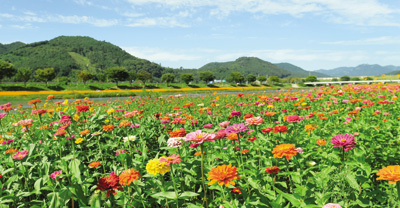 ¡®³ë¶õ²ÉÀÜÄ¡¡¯ÀÇ ÇÙ½ÉÀº ²ÉÀÌ´Ù. Ȳ·æ°º¯ ¾à 20¸¸§³(6¸¸Æò)¿¡ ¹éÀÏÈ«°ú È²È ÄÚ½º¸ð½º, ÇØ¹Ù¶ó±â µîÀ» ´ë±Ô¸ð·Î ½É°í, 13.5§° ±æÀÌÀÇ ¡®²É°¡¯À» Á¶¼ºÇß´Ù. ÇüÇü»ö»öÀÇ ²ÉµéÀÌ °¡À»¹Ù¶÷¿¡ ÀÏÁ¦È÷ Èçµé¸®´Â ¸ð½ÀÀº Àå°ü ±× ÀÚü´Ù.