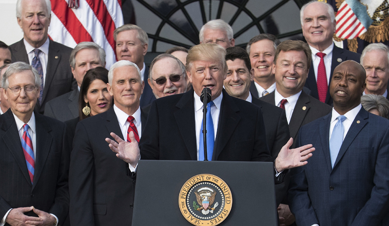 ¹ýÀμ¼ ´ëÆø ÀÎÇÏ µî ÇâÈÄ 10³â°£ 1Á¶5õ¾ï ´Þ·¯(¾à 1õ630Á¶¿ø) °¨¼¼¸¦ °ñÀÚ·Î ÇÏ´Â ¹Ì±¹ ÇàÁ¤ºÎÀÇ ¼¼Á¦°³Æí ¹ý¾ÈÀÌ ÇÏ¿ø¿¡ ÀÌ¾î »ó¿ø ÀÇȸ±îÁö ÃÖÁ¾ °ü¹®ÀÌ Åë°úµÇÀÚ µµ³Îµå Æ®·³ÇÁ ´ëÅë·ÉÀÌ 20ÀÏ(ÇöÁö½Ã°£) ¹é¾Ç°ü¿¡¼ ÃàÇÏÇà»ç¸¦ °®°í ÀÖ´Ù. /AP=¿¬ÇÕ´º½º