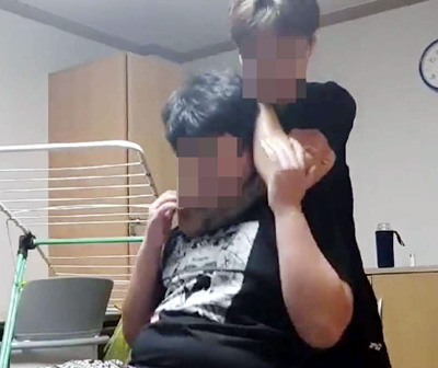 ÇÑ ÇлýÀÌ ¹æ ¾È¿¡¼ ´Ù¸¥ Çлý¿¡°Ô ¸ñÁ¹¸²À» ´çÇϰí ÀÖ´Ù. »çÁøÀº ÃÖ±Ù ¿Ïµµ ¸ð °íµîÇб³ ±â¼÷»ç¿¡¼ ÀÖ¾ú´ø ¡®±âÀý³îÀÌ¡¯µ¿¿µ»ó ĸÃÄ.