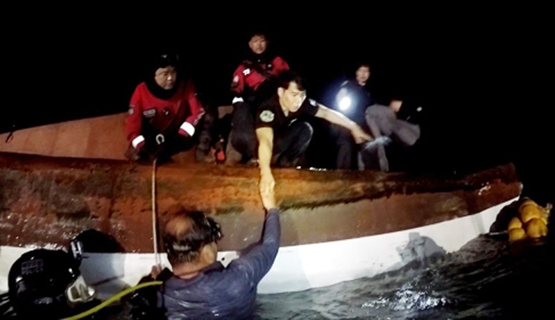 »ç°í ´ç½Ã ¼±Àå A(58)¾¾´Â µÚÁýÈù ¹è À§¿¡¼ ±¸Á¶¸¦ ±â´Ù¸®´Ù Àα٠¾î¼±¿¡ ±¸Á¶µÆ´Ù. ÇÔ²² Ÿ°í ÀÖ´ø ¼±¿ø B(58)¾¾´Â Àüº¹µÈ ¹è ¾È¿¡ °¤Çô ÀÖ´Ù°¡ 90¿©ºÐ ¸¸¿¡ ÇØ°æ¿¡ ±¸Á¶µÆ´Ù. B¾¾´Â ¹è°¡ µÚÁýÈ÷¸é¼ ¼±½Ç¿¡ °¤Çû°í ºÎÀ¯¹°°ú »ç·á°¡ ½×¿© ÀÖ¾î ±¸Á¶´ë°¡ ³»ºÎ·Î ÁøÀÔÇÏ´Â µ¥ ¾î·Á¿òÀ» °Þ¾ú´Ù.
