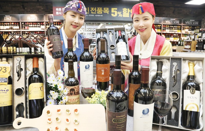 19ÀÏ ¼­¿ï À̸¶Æ® ¿ë»êÁ¡¿¡¼­ ¸ðµ¨µéÀÌ ¿ÍÀÎ ¼±¹°¼¼Æ®¸¦ ¼±º¸À̰í ÀÖ´Ù. À̸¶Æ®´Â Ãß¼®À» ¸Â¾Æ ¿ÍÀÎ ¼±¹°¼¼Æ® ¹°·®À» Áö³­ÇØ Ãß¼® ´ëºñ 30% ´Ã¸®°í, ¹Ì±¹ ³ªÆÄ¹ë¸®ÀÇ ½Ã±×´Ïó ºê·£µå ÇÑÁ¤»óǰÀ» ºñ·ÔÇØ ±¹¹Î ¿ÍÀÎ ¼¼Æ®, ÃÊÀú°¡ ¿ÍÀÎ ¼¼Æ® µîÀ» ÆÇ¸ÅÇÑ´Ù. /¿¬ÇÕ´º½º