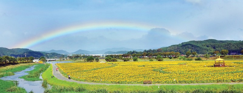 Á¦18È£ ÅÂdz ¡®¹ÌŹ(MITAG)¡¯ÀÌ ¹°·¯°£ 3ÀÏ ¿ÀÀü À强 µé³è¿¡ ¼±¸íÇÑ ¹«Áö°³°¡ ¶° ¡®°¡À» ³ë¶õ²ÉÀÜÄ¡¡¯ ÃàÁ¦Àå°ú ¾î¿ì·¯Á® Àå°üÀ» ¿¬ÃâÇϰí ÀÖ´Ù. À强±ºÀº ÇØ¹Ù¶ó±â¿Í ÄÚ½º¸ð½º, ¹éÀÏÈ«, õÀÏÈ« µî 10¾ï ¼ÛÀÌÀÇ °¡À»²ÉÀÌ È°Â¦ ÇÉ È²·æ°­º¯¿¡¼­ ¿À´Â 5ÀϺÎÅÍ ³ë¶õ²ÉÀÜÄ¡¸¦ ¿¬´Ù./À强±º Á¦°ø