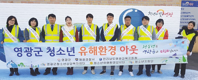 À̳¯ ÁöµµÁ¡°Ë¿¡´Â ¿µ°ü±º, ¿µ±¤Ã»¼Ò³â»ó´ãº¹Áö¼¾ÅÍ, ¿µ±¤±ºÃ»¼Ò³âÀ¯ÇØÈ¯°æ°¨½Ã´ÜÀÌ Âü¿©ÇßÀ¸¸ç û¼Ò³âº¸È£¹ý È«º¸ ¸®Ç÷¿À» ¹èºÎÇϰí ÁÖº¯ »ó°¡µéÀ» ¹æ¹®ÇØ Ã»¼Ò³â ´ë»ó ÁÖ·ù ´ã¹è ÆÇ¸ÅÇàÀ§ ±ÝÁö Ç¥½Ã ½ºÆ¼Ä¿ ºÎÂø µî û¼Ò³â À¯ÇØÈ¯°æ¿¡ ´ëÇÑ °èµµ È«º¸¸¦ ÆîÃÆ´Ù.