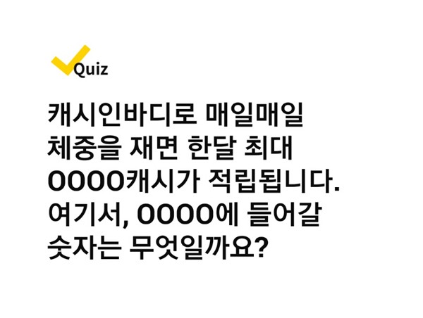 À̾îÁø µÎ¹øÂ° ÄûÁî "ij½ÃÀιٵð·Î ¸ÅÀϸÅÀÏ Ã¼ÁßÀ» Àç¸é ÇÑ´Þ ÃÖ´ë ¤·¤·¤·¤·Ä³½Ã°¡ Àû¸³µË´Ï´Ù. ¿©±â¼ ¤·¤·¤·¤·¿¡ µé¾î°¥ ¼ýÀÚ´Â ¹«¾ùÀϱî¿ä"ÀÇ Á¤´äÀº '4500'ÀÌ´Ù.