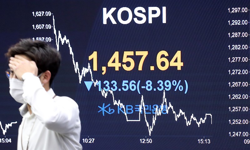 19ÀÏ ¼­¿ï ¿µµîÆ÷±¸ ¿©Àǵµ KB±¹¹ÎÀºÇà µô¸µ·ë¿¡¼­ ÇÑ Á÷¿øÀÌ Áõ½Ã ÇöȲÆÇ ¾ÕÀ» Áö³ª°í ÀÖ´Ù. À̳¯ ÄÚ½ºÇÇ´Â ¹Ì±¹ ´º¿å Áõ½ÃÀÇ ´Ù¿ìÁ¸½º30 »ê¾÷Æò±ÕÁö¼ö°¡ 2¸¸ Æ÷ÀÎÆ® ¾Æ·¡·Î ¶³¾îÁö°í, 4-5%´ë ³«ÆøÀ» ±â·ÏÇÑ À¯·´ ÁÖ¿ä±¹ µî ±Û·Î¹ú Áõ½ÃÀÇ ¿µÇâÀ¸·Î 1,500¼±ÀÌ ¹«³ÊÁö¸ç ±Þ¶ôÇß´Ù./¿¬ÇÕ´º½º
