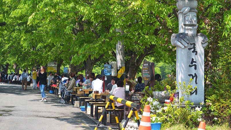°ü¹æÁ¦¸²À» µû¶ó ÁÙÁö¾î ÀÖ´Â ´ã¾ç ±¹¼öÀÇ °Å¸®´Â ¿À·¡ Àü Á×¹°½ÃÀåÀ» ãÀº »óÀÎÀ̳ª Á×¼¼°øµéÀÌ ÀÚÁÖ Ã£À¸¸ç Çü¼ºµÈ °Å¸®´Ù. ³ª¹« ¹Ø Æò»ó¿¡ ¾É¾Æ ±¹¼ö¸¦ ¸ÔÀ¸¸é ´«°ú ÀÔÀÌ ¸ðµÎ Áñ°Ì´Ù.