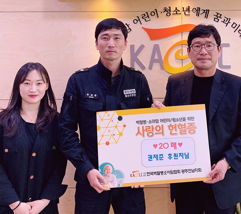 ÇØ¾ç°æÂûû Áß¾ÓÇØ¾çƯ¼ö±¸Á¶´Ü ¼ÇØÇØ¾çÆ¯¼ö±¸Á¶´ë ¼Ò¼Ó ±ÇÀçÁØ(»çÁø °¡¿îµ¥) °æÀ§°¡ ÃÖ±Ù ¹éÇ÷º´À» ¾Î°í ÀÖ´Â ¾ÆÀ̵éÀ» À§ÇØ ÇåÇ÷Áõ°ú ±ä±Þ»ýȰºñ¸¦ ±âºÎÇß´Ù.