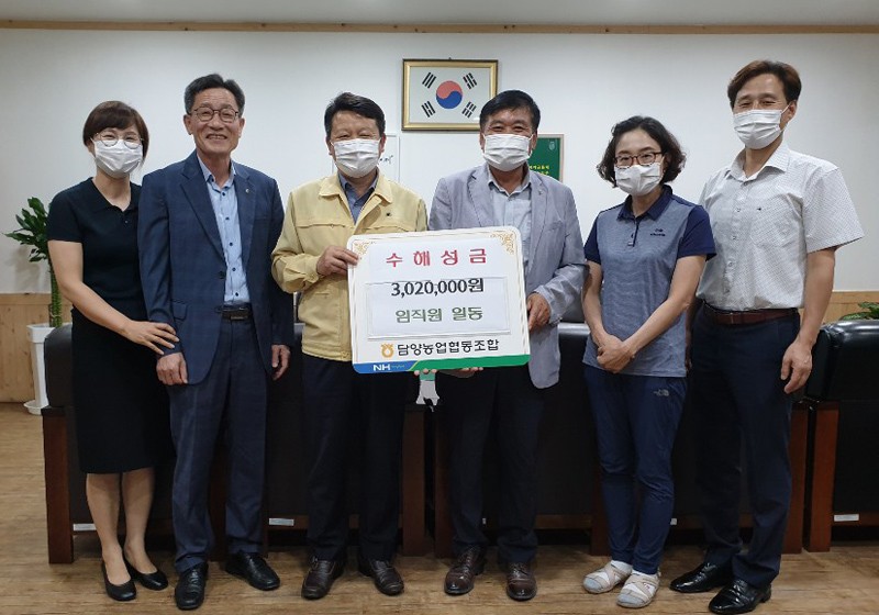 ´ã¾ç³ó¾÷Çùµ¿Á¶ÇÕ ±è¹üÁø Á¶ÇÕÀå°ú ¿øÁØÈ£ »óÀÓÀÌ»ç, ¼¼±¿À »ó¹« µî ÀÓÁ÷¿ø Àϵ¿Àº ÃÖ±Ù ´ã¾çÀ¾»ç¹«¼Ò¿Í ¿ë¸é»ç¹«¼Ò¸¦ ¹æ¹®, ¼öÇØ¸¦ ÀÔÀº ³ó°¡ÀÇ ÇÇÇØ º¹±¸¸¦ Áö¿øÇϱâ À§ÇØ »ç¿ëÇØ´Þ¶ó¸ç 302¸¸¿ø°ú 100¸¸¿øÀÇ ¼º±ÝÀ» °¢°¢ ±âŹÇß´Ù.