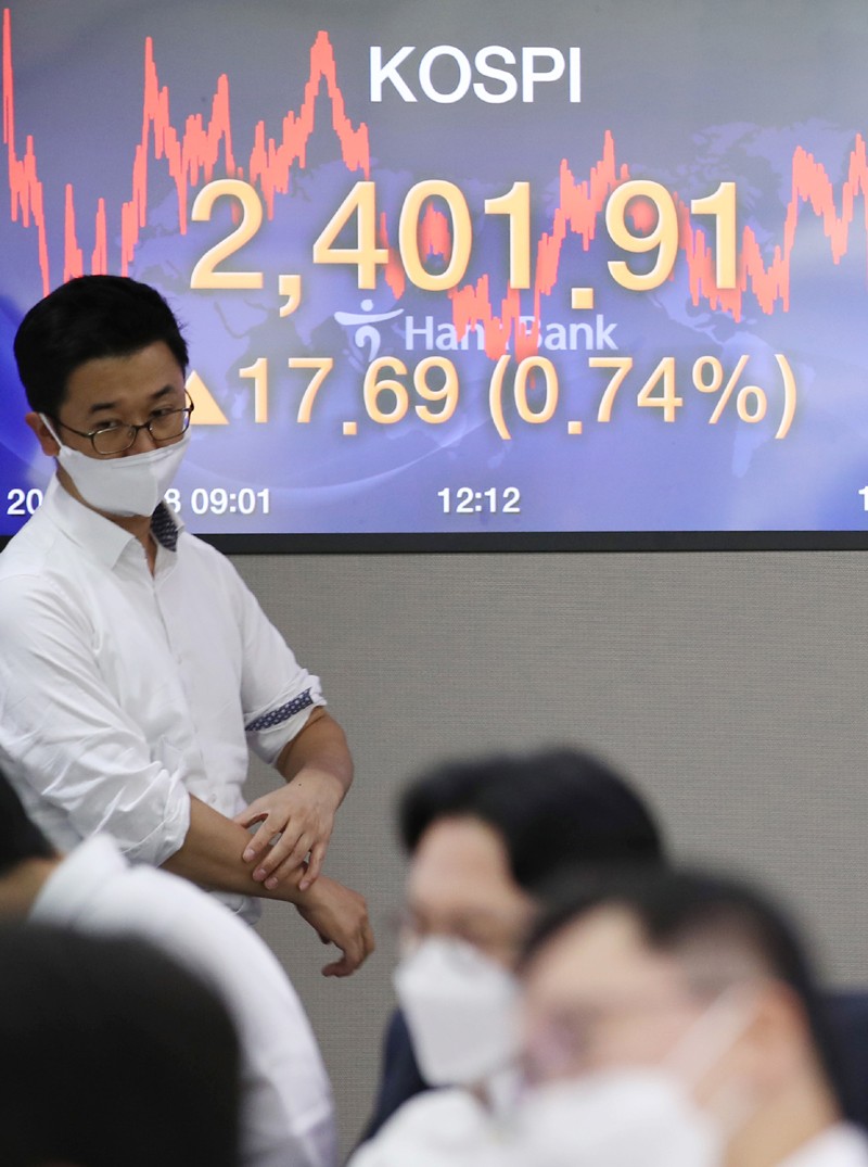 ÄÚ½ºÇǰ¡ »ó½Â ¸¶°¨ÇÑ 8ÀÏ ¿ÀÈÄ ¼­¿ï Áß±¸ ÇϳªÀºÇà º»Á¡ µô¸µ·ë¿¡¼­ Á÷¿øÀÌ ¾÷¹«¸¦ º¸°í ÀÖ´Ù. À̳¯ ÄÚ½ºÇÇ´Â Àü °Å·¡ÀϺ¸´Ù 17.69Æ÷ÀÎÆ®(0.74%) ¿À¸¥ 2,401.91¿¡ °Å·¡¸¦ ¸¶ÃÆ´Ù./¿¬ÇÕ´º½º