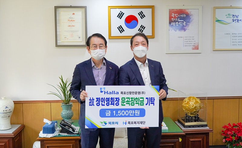 ÇѶó ¸ñÆ÷½ÅÇ׸¸¿î¿µ¢ß´Â ÇѶó±×·ì â¾÷ÁÖÀÎ °í(ͺ) Á¤Àοµ ¸í¿¹È¸ÀåÀÇ ÀÎÀç À°¼º ¶æÀ» ±â¸®±â À§ÇØ ¿î°îÀåÇбÝÀ» ¿î¿µÇϰí ÀÖ´Ù.