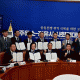 Áذø½Ä¿¡´Â ±è»ê ¹«¾È±º¼ö¿Í Á¤µµ½Ä Á¶ÇÕÀåÀ» ºñ·ÔÇÑ ³óÇù ÀÓ¿ø, ´ëÀÇ¿ø, ¿µ³óȸÀå, ºÎ³àȸÀå, ÁֹΠµî 100¿©¸íÀÌ Âü¼®Çß´Ù. Çà»ç´Â ±¹»ê¹Ð °ÇÁ¶¡¤ÀúÀå½Ã¼³ °Ç¸³ °æ°ú º¸°í¿Í °¨»çÆÐ ¼ö¿©, Ãà»ç, Å×ÀÌÇÁ Ä¿ÆÃ ¼øÀ¸·Î ÁøÇàµÆ´Ù.