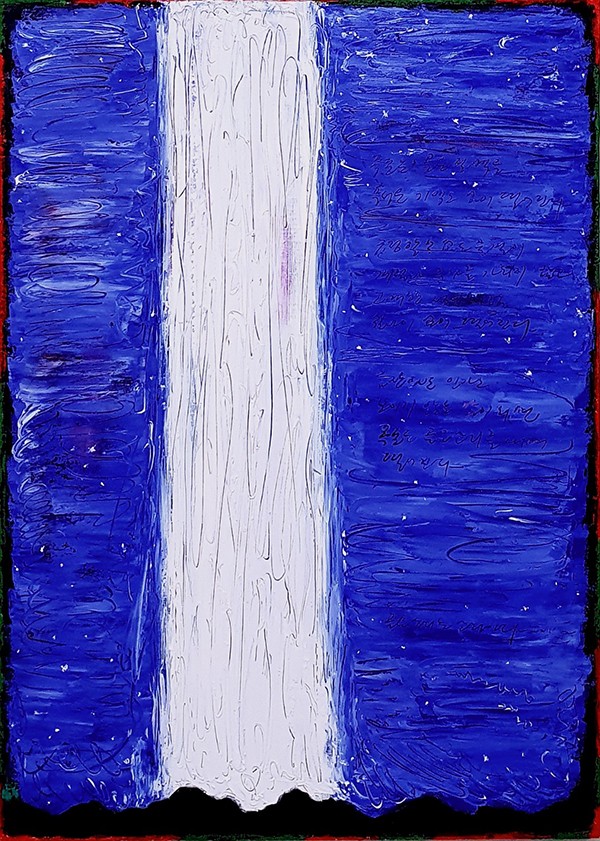 ±×´Â ´Ù½Ã ¿ì¸® ¶¥ÀÇ Á¤½Å°ú ¿ª»çޱ¸ ޱ¸¸¦ À§ÇÑ Àü³²ÀÇ °¡»ç¹®È±Ç°ú ±Ý°»êÀÇ ¾Æ¸§´ä°í È·ÁÇÑ ¶¥ÀÇ Áø°æÀ» ´ã¾Æ³½´Ù. °¡»ç¹®È±ÇÀº Á¶¼±½Ã´ë ¼±ºñ¹®ÈÀÎ ½Ã°¡¹®ÇÐÀÇ ÀÀÃàµÈ »ê½Ç·Î ºÒÀÇ¿¡ ¸Â¼°í ÀýÁ¦µÈ »îÀÇ ¿øÃµÀ̱⵵ Çϸç, À¯±³¿Í µµ±³, ÀÚ¿¬ÁÖÀÇ »ç»óÀÌ ÀÀÃàµÅ Àڱ⼺ÂûÀÌ ¿ä±¸µÇ°í ÀÖ´Â °÷ÀÌ´Ù. ÀÌ·¸°Ô ÀüÅëÀÇ Á¤½ÅÀÌ »Ñ¸® ±íÀº Àå¼Ò¸¦ ÀüÅëÈ¸È ±â¹ýÁß ÇϳªÀÎ ¡®ºÎ°¨¹ý¡¯À¸·Î »êÇϸ¦ È®Àå½ÃÄÑ ¹Ù¶óº¸°í ¼Ò¼â¿ø°ú ¸é¾ÓÁ¤, ¼Û±¤Á¤°ú Á¤ÀÚ³ª¹«¿Í ´ë³ª¹«, ¼Ò¼â¿ø ¹°±æ¿¡ ÁýÁß½ÃÄÑ ÀÛǰÀ» Á¦ÀÛÇß´Ù. °¡»ç¹®È±Ç ¿¬ÀÛÀº ÀüÅëÀÇ ±³Èưú Á¤½ÅÀ» ÀÚ¿¬Ç³°æ¿¡ ´ã¾Æ Åõ¹ÚÇϰí Á¤°¨¾î¸° ¼Á¤Àû ¾î¹ýÀ¸·Î ³ª¸§ÀÇ ¼º°ú¸¦ °ÅµÐ´Ù. ±×¸®°í 2000³â´ë¿¡ Á¢¾îµé¸é¼ ½Ã´ë¸¦ ¹Ù¶óº¸´Â ¿¹¼ú°¡ÀÇ Ã¥¹«°¨ÀÌ ¹«¾ùÀΰ¡¿¡ ´ëÇÑ ±íÀº ¼ºÂûÀ» ÇÑ´Ù. ±×·¯ÇÑ ¿¬Àå¼±¿¡¼ »ç°èÀý ±Ý°»êÀ» È®ÀÎÇÏ°í ´õ¿í È®ÀåµÈ ¿ì¸®»êÇÏÀÇ ¿ª»ç¿Í (°âÁ¦)Á¤¼±ÀÇ Áø°æÁ¤½ÅÀ» ޱ¸·Î ±Ý°¿¬ÀÛ¿¡ ¸ôÀÔÇÑ´Ù. Á¦ÀÛ¹æ¹ýÀº ¡®ºÎ°¨¹ý¡¯(ÜöÊùÛö)°ú ¡®Á¶È±â¹ý¡¯(ðÁü£ÐüÛö¡¤¹°°¨À» ±Ü¾î¼ ±×¸®´Â Á¶¼± Ãʱ⠺Ðû»ç±â À½°¢±â¹ý)À¸·Î ±Ý°»ê ±¸¼®±¸¼®À» ¼Á¤Àû ¾î¹ýÀ¸·Î ´ã¾Æ³Â´Ù. ÀÌ·¯ÇÑ °úÁ¤ÀÌ ½×ÀÌ¸é¼ ¿ª»ç¸¦ ¹Ù¶óº¸´Â °Ç°ÇÑ ¿¹¼ú°¡ÀÇ Á¤½ÅÀ» ޱ¸ÇÑ´Ù.