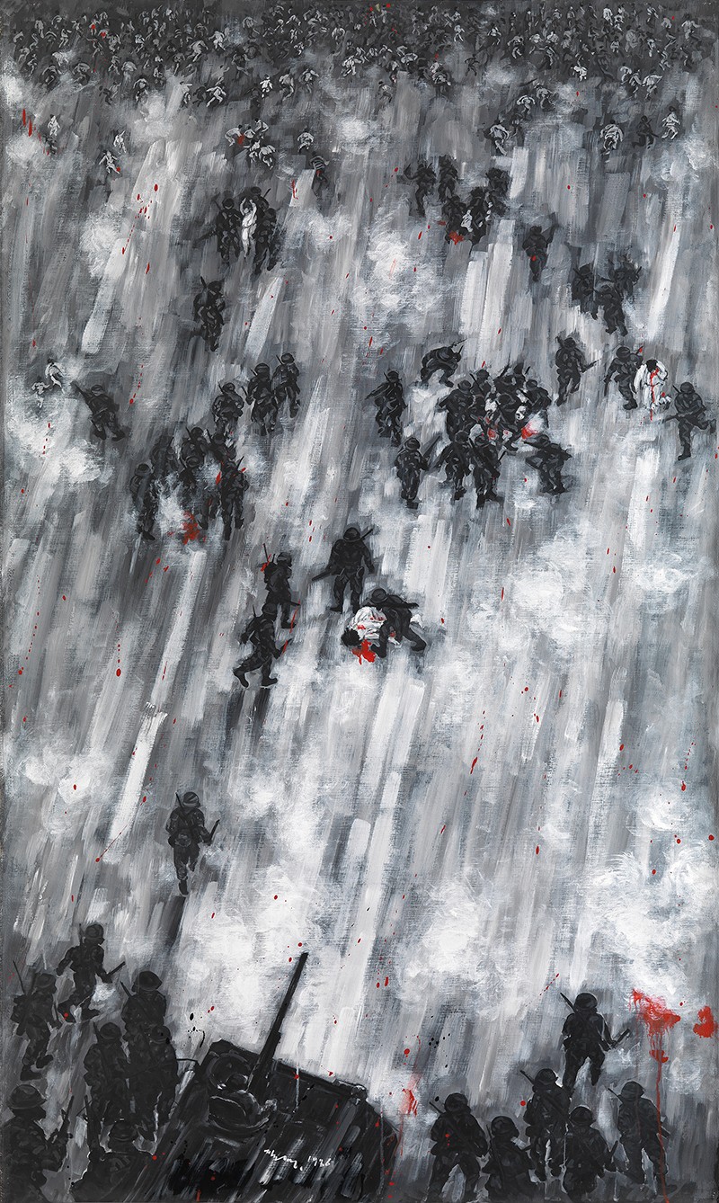 ÀÌ ½Ã±â ´ëÇüÀÛǰÀÎ 150È£ Å©±âÀÇ µÎ·ç¸¶±â ĵ¹ö½º¿¡ ¡®5¿ù ±¤ÁÖ¡¯¸¦ ÁÖÁ¦º°·Î ³ª´² 10Á¡À» Á¦ÀÛÇÑ´Ù. ±×·¯³ª °¡³Çß´ø û³â±â ½ÃÀý ¼ÒȦÇÑ º¸°üÀ¸·Î ÀÛǰÀº ¾Æ½±°Ôµµ ¸Á½ÇµÇ°í ³²¾ÆÀÖ´Â 1Á¡Àº ¡®Çлì-±Ý³²·Î¡¯(1986)´Ù. ÀÌ ÀÛǰÀº °ø¼öºÎ´ë°¡ ±Ý³²·Î ½ÃÀ§´ë Áø¾ÐÀ» ±×¸° ÀÛǰÀ¸·Î ±× ±ä¹ÚÇÑ ¼ø°£À» Æ÷ÂøÇß´Ù. ¿ì¼± 27¼¼ÀÇ Ã»³âÀÛ°¡·Î 150È£ ´ëÇü µÎ·ç¸¶±â 10Á¡À» Á¦ÀÛÇß´Ù´Â ±Ô¸ð¸é¿¡¼ ³î¶ø±âµµ ÇÏÁö¸¸ ³ôÀº ¿Ï¼ºµµ ¶ÇÇÑ ³î¶ø´Ù. ÂѰí Âѱâ´Â ±ä¹ÚÇÔÀ» ´ã´Â º×Áú°ú ÇͺûÀÇ ÈçÀûÀº ´õ¿í ±ä¹Ú°¨À» °Á¶½ÃŲ´Ù. Èò»öÀÇ °ÇÑ º×Áú ¼Ó¿¡ ÇÔÃàµÈ Çü»óÀº ¡®¿¬ÁÂÁ¦¡¯¿¡¼ Ãâ¹ßÇÑ ¡®5¿ù ½Ã¹Î±º¡¯ÀÇ Á¤ÀÇ·Ó°íÀÚ Çß´ø ¶ß°Å¿î ¿Á¤°ú ¿ë±â°¡ Á¶ÇüÀû ´ã´ëÇÔÀ¸·Î ȯ»ýÇÏ´Â ºÐ³ëÀÌÀÚ ½Ã´ëÀÇ Á¤´ç¼ºÀÌ´Ù.