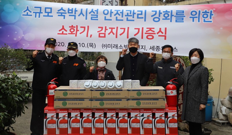 ½Ã¹Î ¾ÈÀüÀ» À§ÇØ °íÇü±æ ¼¼Á¾À¯ºñ½º ´ëÇ¥¿Í ÀÌÇÑ½Ä ¹Ì·¡¼Ò¹æÀÌ¿£Áö ´ëÇ¥´Â À̹ø ¼Ò±Ô¸ð ¼÷¹Ú½Ã¼³ ¾ÈÀü °È »ç¾÷¿¡ ¼Òȱâ 150°³¿Í °¨Áö±â 300°³¸¦ ±âÁõÇß´Ù.
