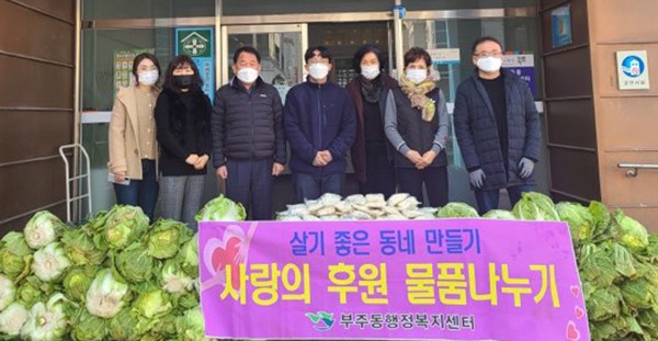 ºÎÁÖµ¿ÇàÁ¤º¹Áö¼¾ÅÍ´Â ÈÄ¿ø ¹°Ç°À» ¾î¸£½Å ¹× Àú¼ÒµæÃþ ¾Æµ¿ 50¼¼´ë, Áö¿ª¾Æµ¿¼¾ÅÍ 2°³¼Ò¿¡ Àü´ÞÇß´Ù.