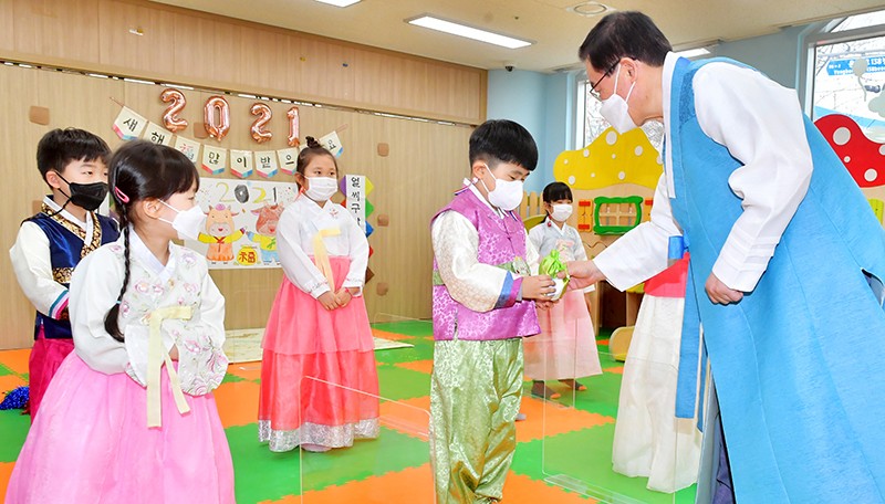 ¼³ ¸íÀýÀ» º¸¸§¿© ¾ÕµÐ 26ÀÏ ¿ÀÈÄ ±¤ÁÖ ºÏ±¸Ã» Á÷Àå¾î¸°ÀÌÁý¿¡¼­ ¹®ÀΠûÀåÀÌ ¾ÆÀ̵鿡°Ô º¹ÁָӴϸ¦ ¼±¹°Çϰí ÀÖ´Ù. ºÏ±¸´Â Äڷγª19 Àå±âÈ­·Î ¾ÆÀ̵鿡°Ô Ȱ·ÂÀ» ÁÖ±â À§ÇØ ¼¼¹è ¹è¿ì±â¿Í º¹ÁָӴϸ¦ Àü´ÞÇÏ´Â ½Ã°£À» ¸¶·ÃÇß´Ù./±è¾Ö¸® ±âÀÚ