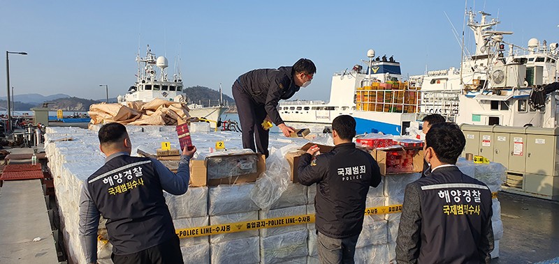 ¸ñÆ÷ÇØ¾ç°æÂû¼´Â 28ÀÏ »õº® Áß±¹»ê ´ã¹è ¾à 1õ70¹Ú½º(Á¤Ç° ½Ã°¡ 21¾ï¿ø ÃßÁ¤)¸¦ °©ÆÇ°ú ¾îâ¿¡ ¼û°Ü ±¹³»·Î ¹Ð¼öÇÏ·Á°í ÇÑ ¾î¼±À» ºÙÀâ¾Æ ¸ñÆ÷Ç×À¸·Î ¾Ð¼ÛÇß´Ù. »çÁøÀº À̳¯ ÇØ°æÀÌ Æ÷Àå¹Ú½º¸¦ ¶â¾î ¹Ð¼öǰÀ» È®ÀÎÇϰí ÀÖ´Â ¸ð½À. <¸ñÆ÷ÇØ°æ Á¦°ø>