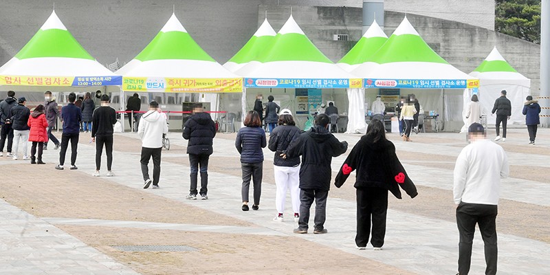 ±¤ÁÖÁö¿ª ½Å±Ô È®ÁøÀÚ¼ö°¡ ÁøÁ¤¼¼¸¦ º¸ÀÎ °¡¿îµ¥ ¼³ ¿¬ÈÞ ¸¶Áö¸· ³¯ÀÎ 14ÀÏ ¿ÀÀü ±¤ÁÖ½Ãû ¾ß¿Ü±¤Àå Äڷγª19 Àӽà ¼±º°°Ë»ç¼Ò¿¡¼ ½Ã¹ÎµéÀÌ Áø´Ü°Ë»ç¸¦ ¹Þ±âÀ§ÇØ ¼ø¼¸¦ ±â´Ù¸®°í ÀÖ´Ù./±è¾Ö¸® ±âÀÚ