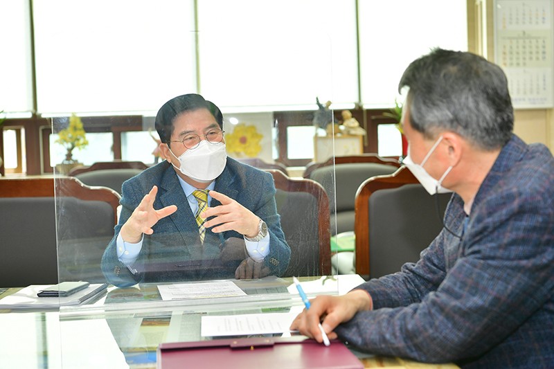 À¯µÎ¼® À强±º¼ö°¡ 9ÀÏ Áý¹«½Ç¿¡¼ ±¤ÁÖ¸ÅÀϽŹ® À̰æ¼ö ÆíÁý±¹Àå°ú ÀÎÅͺ並 ÁøÇàÇϰí ÀÖ´Ù. |