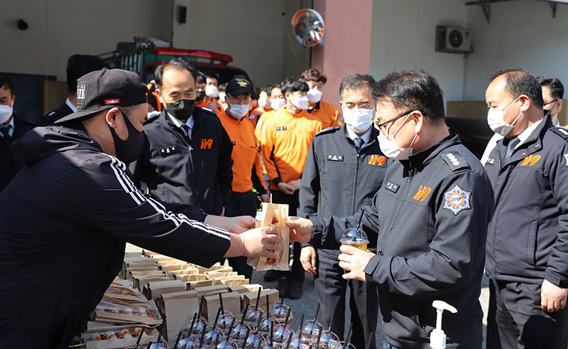 Àü±¹ÇªµåÆ®·°¿¬ÇÕȸ´Â °¢Á¾ Àç³ÇöÀå ¹× Äڷγª Àϼ±¿¡¼ ºÐÅõÇϰí ÀÖ´Â ¼Ò¹æ°ø¹«¿øµé¿¡ ´ëÇÑ °Ý·Á¿Í ÇÔ²² Á÷¿ø 80¸í¿¡°Ô Ä¿ÇÇ, À½·á, Á¦°ú¸¦ Á¦°øÇÏ°í ±Ù¹« Áß ¾Ö·Î»çÇ× ¹× °ÇÀÇ»çÇ×À» ûÃëÇÏ´Â µî ´ëÈÀÇ ½Ã°£À» °¡Á³´Ù.