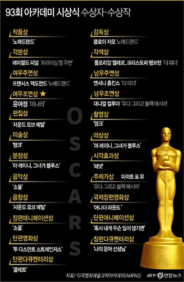 À±¿©Á¤Àº Çѱ¹ ¹è¿ì·Î´Â óÀ½ ¿À½ºÄ« ¿¬±â»ó Æ®·ÎÇǸ¦ ǰ¿¡ ¾È¾Ò°í, ¡®»ç¿ä³ª¶ó¡¯(1957)ÀÇ ¿ì¸ÞŰ ¹Ì¿ä½Ã ÀÌÈÄ ¿ª´ë µÎ ¹øÂ°·Î ¾ÆÄ«µ¥¹Ì ¿©¿ìÁ¶¿¬»óÀ» ¹ÞÀº ¾Æ½Ã¾Æ ¿©¼º ¹è¿ì°¡ µÆ´Ù.