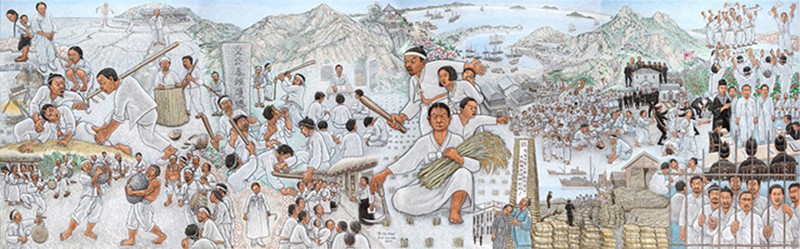 1623³â(ÀÎÁ¶¿ø³â) Á¤¸í°øÁÖÀÇ °áÈ¥À¸·ÎºÎÅÍ ºñ·ÔµÈ ÇÏÀÇ 3µµ ÅäÁöºÐÀïÀÌ ³ó¹ÎÀÇ Ç°À¸·Î µ¹¾Æ°¡ 2005³â ´ëÇѹα¹ ½Å¾È±º ÅäÁö´ëÀå¿¡ ±â·ÏµÇ±â±îÁö 382³â µ¿¾È Áö¼ÓµÈ ³ó¹ÎµéÀÇ ´ë¸¦ ÀÌÀº ²öÁú±ä ÀúÇ×°ú Ç×Àï, Àγ»ÀÇ ¿ª»ç¸¦ ´ãÀº ÀÛǰÀÌ´Ù. °¢ ÀÛǰÀº 10m¿¡ À̸£´Â ´ëÇü±×¸²À¸·Î Á¦À۵ƴÙ.