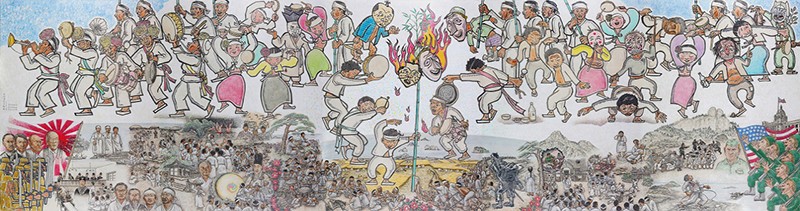 ¶Ç ´Ù¸¥ ÀÛǰ ¡®±¤ÁÖ ¿À¿ùÀÇ ¹®, À±»ó¿øÀÇ ´«¡¯Àº 5¡¤18±¤ÁÖ¹ÎÁßÇ×ÀïÀ» ±â·ÏÇÑ ´ëÇü °É°³±×¸²ÀÌ´Ù. ÀÛǰ Á߽ɺο¡ À±»ó¿ø¡¤¹Ú±â¼ø ¿»çÀÇ ¿µÈ¥°áÈ¥½ÄÀ» Áß½ÉÀ¸·Î 80³â 5¡¤18 ¹ÎÁÖÇ×Àï ´ç½Ã »ç°Ç°ú ½ÇÁ¸ Àι°µéÀÌ »ó¡ÀûÀ¸·Î ±×·ÁÁ³´Ù. ÀÌ ÀÛǰÀº 2000³â Á¦ 3ȸ ±¤ÁÖºñ¿£³¯·¹ ¡®ìÑ+Êà Àαǰú ¿¹¼ú Ưº°Àü¡¯¿¡ ÃâǰµÆ´ø ÀÛǰÀ¸·Î È«¼º´ã ÀÛ°¡¸¦ ºñ·ÔÇÑ ±¤Áֽð¢¸Åü¿¬±¸È¸¿¡¼ ¼Ò¼Ó ¿¹¼ú°¡(È«¼º´ã, ÀüÁ¤È£, ¹éÀºÀÏ, Àü»óº¸, È«¼º¹Î ¹Ú±¤¼ö)¿¡ ÀÇÇØ ¹ã³·¾ø´Â µÎ ´Þ¿¡ °ÉÃÄ Á¦À۵ƴÙ.
