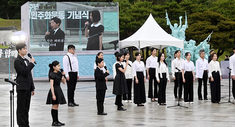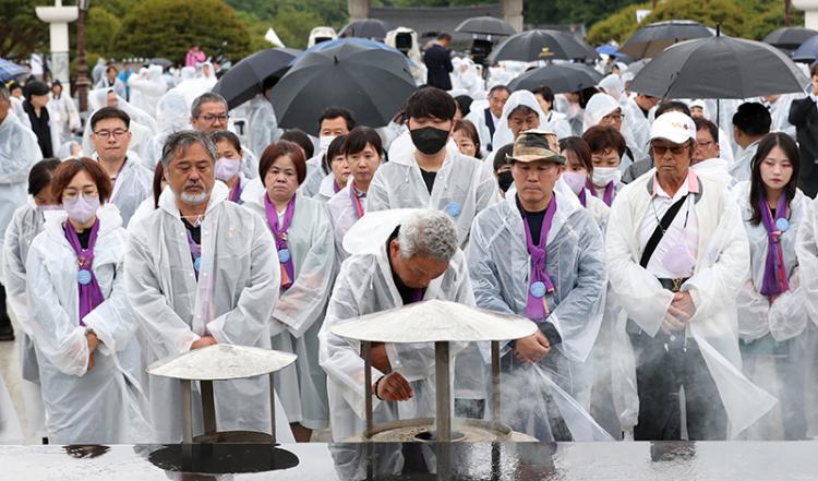 5¡¤18¹ÎÁÖȿ 43Áֳ⠱â³ä½ÄÀÌ ¿¸° 18ÀÏ ¿ÀÀü ±¹¸³ 5¡¤18¹ÎÁÖ¹¦Áö¿¡¼ Ã߸𰴵éÀÌ ¿À¿ù ¿µ·ÉµéÀÇ ¹¦¼Ò¸¦ Âü¹èÇϰí ÀÖ´Ù.
