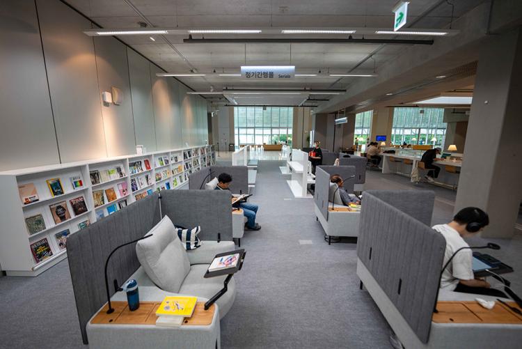 Ã¥ ½°Åʹ å°ú ÇÔ²² ÈÞ½ÄÇÏ´Â °ø°£ÀÌ´Ù. ÀºÀºÇÑ °£Á¢Á¶¸í ¾Æ·¡ ¾Æ´ÁÇÑ ºÐÀ§±â¸¦ ¿¬ÃâÇØ ¸¹Àº À̵éÀÌ Áñ°Ü ã´Â´Ù. Ä£ÈÇü Ã¥»ó°ú ÀÇÀÚ°¡ ÀÖ¾î Ã¥Àбâ¿Í °³ÀÎ ¿¬±¸µµ °¡´ÉÇÏ´Ù. ¼Ò¸®Ã¥ ¹«Àξȳ»±â(¿Àµð¿ÀºÏ Ű¿À½ºÅ©), ÀüÀÚ(µðÁöÅÐ) ½Å¹®´ë, Çмú ¿¹¼ú¿µ»ó ÀÚ·á °Ë»ö ¹× ¿¶÷À» À§ÇÑ ÄÄÇ»Å͵µ ÀÚÀ¯·Ó°Ô »ç¿ëÇÒ ¼ö ÀÖ´Ù. °÷°÷¿¡ Äܼ¾Æ®¿Í À¯¿¡½ººñ(USB) ´ÜÀÚ¸¦ ±¸ºñÇØ ³ëÆ®ºÏ°ú ÈÞ´ëÀüÈ ÃæÀüµµ °¡´ÉÇÏ´Ù.