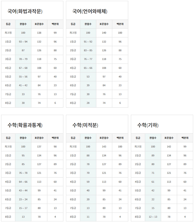 ¼ºÀûÅëÁöÇ¥¿¡´Â ¿µ¿ª/°ú¸ñº° Ç¥ÁØÁ¡¼ö, ¹éºÐÀ§, µî±ÞÀÌ Ç¥±âµÈ´Ù. ´Ü Çѱ¹»ç¿Í ¿µ¾î, Á¦2¿Ü±¹¾î/Çѹ®¿µ¿ªÀº Àý´ëÆò°¡¿¡ µû¸¥ µî±Þ¸¸ ³ª¿Â´Ù.