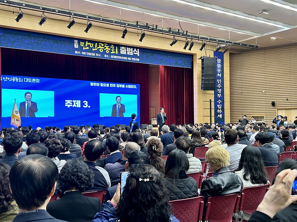 ±¤ÁÖÀÇ ¹Ì·¡ ¹ßÀü Àü·«°ú ´ë¼± ¿ªÇÒ ¸ð»öÀ» À§ÇÑ Æ÷·³ ¸¸¹Î°øµ¿È¸°¡ 13ÀÏ ¿ÀÈÄ ±è´ëÁßÄÁº¥¼Ç¼¾ÅÍ¿¡¼ Ãâ¹ü ±â³ä Åä·Ðȸ¸¦ Çϰí ÀÖ´Ù. À̳¯ Á¤Ã»·¡ ±¹È¸ ¹ý»çÀ§¿øÀåÀÌ Åä·ÐÀÚ·Î ³ª¼ ¹ß¾ðÇϰí ÀÖ´Ù./¿¬ÇÕ´º½º