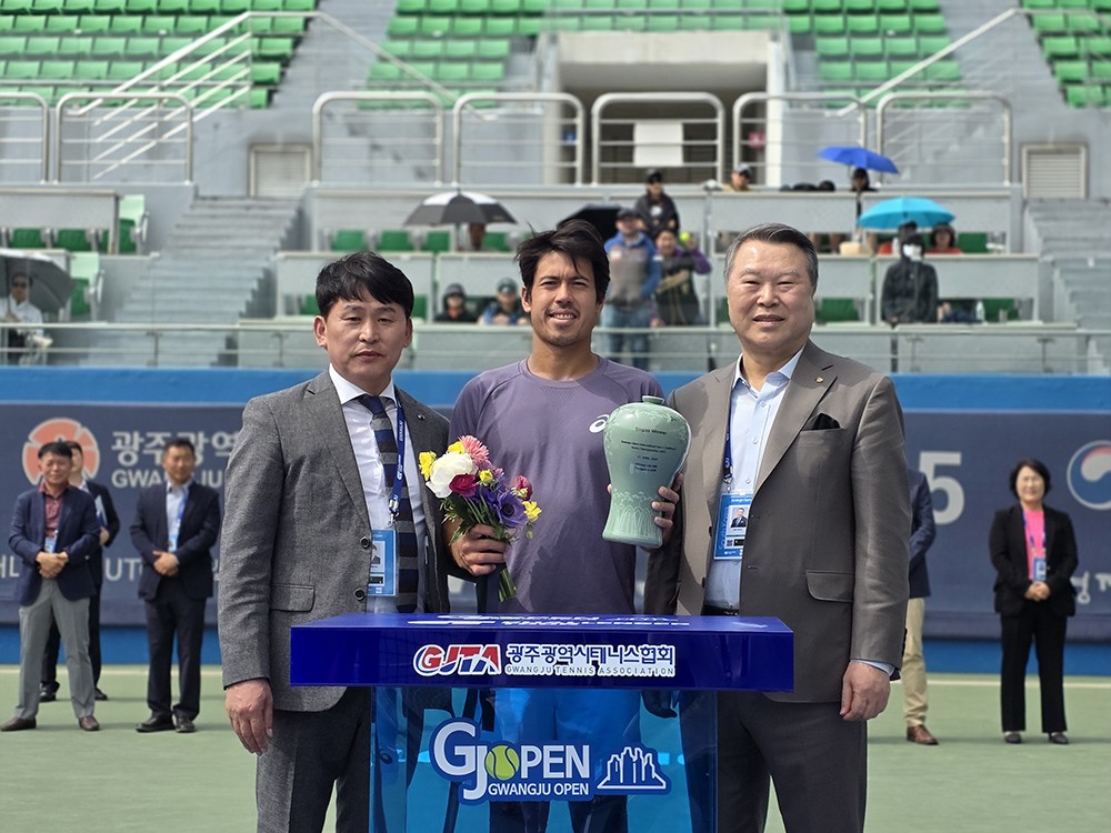 Á¦À̽¼ Äíºí·¯(°¡¿îµ¥¡¤È£ÁÖ)°¡ 27ÀÏ ±¤ÁÖ Áø¿ù±¹Á¦Å״ϽºÀå¿¡¼ ¿¸° 2025 ±¤ÁÖ¿ÀÇ ±¹Á¦³²ÀÚ縰ÀúÅ״Ͻº´ëȸ ´Ü½Ä °á½ÂÀü¿¡¼ ¿ì½ÂÀ» Â÷ÁöÇÑ µÚ Æ®·ÎÇǸ¦ µé°í Àü°©¼ö ±¤ÁÖ½ÃüÀ°È¸Àå(¿À¸¥ÂÊ), ±è±¤Èñ ±¤ÁÖ½ÃÅ״ϽºÇùȸÀå(¿ÞÂÊ)°ú ±â³ä ÃÔ¿µÀ» Çϰí ÀÖ´Ù. <±¤ÁÖ½ÃÅ״ϽºÇùȸ Á¦°ø>