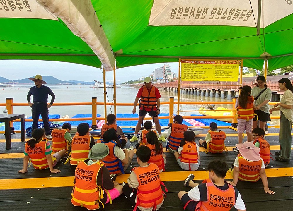Âü¿© ÇлýµéÀº ¾ÈÀü ±³À°À» ¹ÞÀº ÈÄ ¸ñÆ÷ Æòȱ¤Àå ¾Õ ÇØ»ó¿¡¼ ¶¥ÄẸƮ, Á¦Æ®º¸Æ®, µð½ºÄÚÆÎÆÎ µî ´Ù¾çÇÑ ÇØ¾ç·¹Æ÷Ã÷¸¦ Áñ±â¸ç ¹«´õÀ§¸¦ ½Ã¿øÇÏ°Ô ³¯·Á º¸³Â´Ù. ¹°³îÀÌ ÈÄ¿¡´Â ¹Ù¸£°Ô»ì±âÀ§¿øÈ¸°¡ ÁغñÇÑ Â¥Àå¸é°ú ÅÁ¼öÀ°À¸·Î Á¡½É ½Ä»ç¸¦ Çϸç Áñ°Å¿î ½Ã°£À» À̾´Ù.