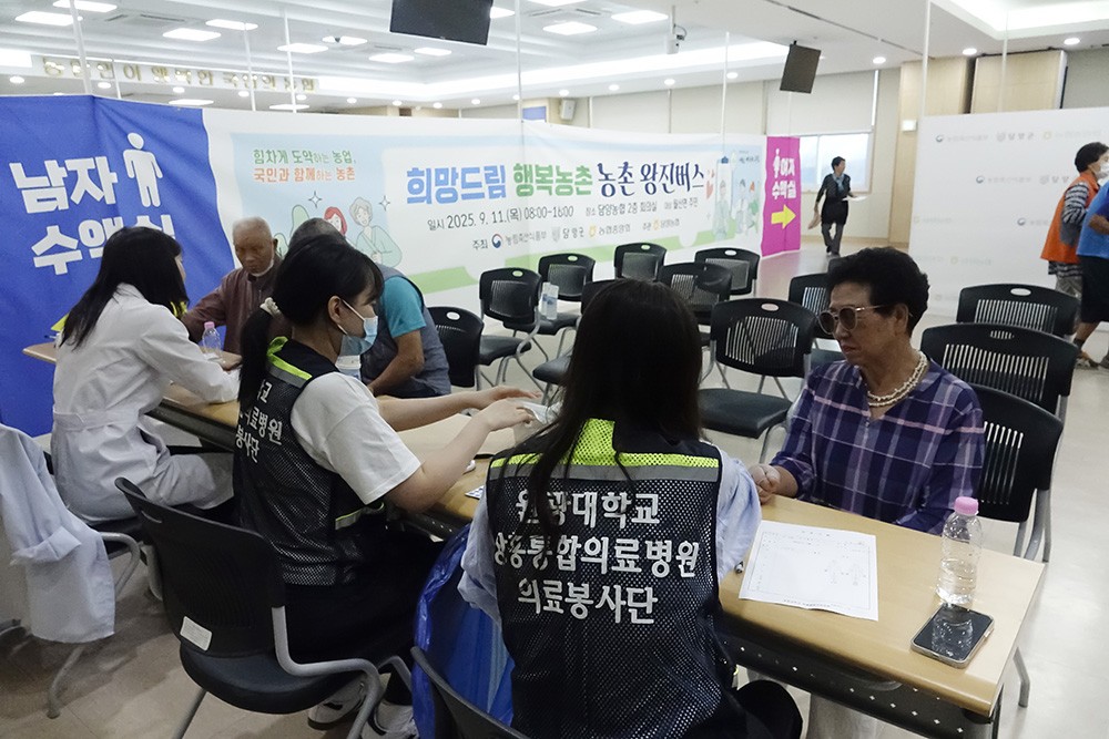 À̹ø Çà»ç´Â ³ó¸²Ãà»ê½ÄǰºÎ¡¤´ã¾ç±º¡¤³óÇùÁß¾Óȸ °øµ¿ ÁÖÃÖ, ´ã¾ç³óÇù ÁÖ°üÀ¸·Î ÀÇ·á Á¢±Ù¼ºÀÌ ³·Àº ³óÃÌ Áö¿ª ¾î¸£½Åµé¿¡°Ô ¹«·á Áø·á¸¦ Á¦°øÇϱâ À§ÇØ ¸¶·ÃµÆ´Ù.