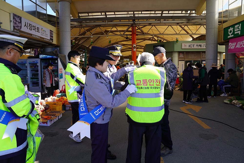 Âü°¡ÀÚµéÀº ÀüÅë½ÃÀå ¹æ¹®°´À» ´ë»óÀ¸·Î º¸ÇàÀÚ ±³Åë»ç°í ¹× °æ¿î±â µî ³ó±â°è »ç°í ¿¹¹æ È«º¸¹°À» ¹èºÎÇϰí, Çü±¤Á¶³¢ µîÀ» ³ª´²ÁÖ´Â µî ±³Åë¾ÈÀü È«º¸È°µ¿À» Àü°³Çß´Ù.