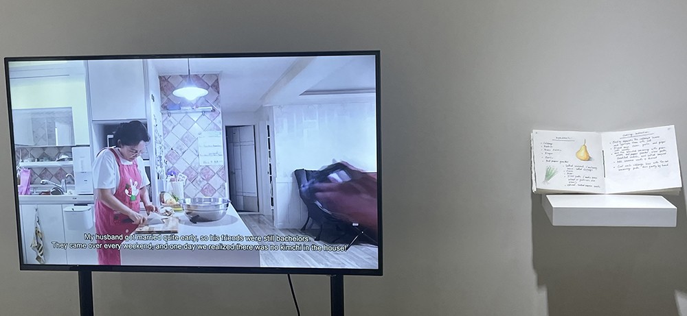 ¿¹¼ú°ø°£ Áý¿¡¼´Â Çù¾÷ ÀÛ¾÷°ú ¿µ»ó ÀÛǰÀÌ ´«±æÀ» ²ö´Ù. ±èÀÚÀÌ ÀÛ°¡¿Í ¾Æ³¶ »ðÅäÅä´Â ·ç¾Ó¸Å½º56 ·¹Áö´ø½Ã¿¡¼ Àο¬À» ¸Î°í ¡®°¡Á·ÀÇ ·¹½ÃÇÇ¡¯¸¦ ¸Å°³·Î ÇÑ °øµ¿ ÀÛ¾÷À» ¼±º¸ÀδÙ. ¾î¸Ó´ÏÀÇ ±èÄ¡ ·¹½ÃÇǰ¡ µîÀåÇÏ´Â ¿µ»óÀº ÇÑ ³¢ÀÇ À½½Ä ¾È¿¡ ±êµç ±â¾ï°ú °ü°èÀÇ À̾߱⸦ ÀüÇϸç, Àü½Ã °ø°£¿¡ µû¶æÇÑ ¿Â±â¸¦ ´õÇÑ´Ù.