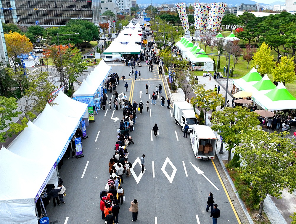 ¿ÃÇØ ÃàÁ¦´Â ¡®¿ìÁÖÃÖ±¤(ÎÃ) ±èÄ¡ÆÄƼ¡¯¸¦ ÁÖÁ¦·Î ¿·ÈÀ¸¸ç ½Ãû ¾Õ µµ·Î¸¦ ¡®Â÷ ¾ø´Â °Å¸®¡¯·Î Á¶¼ºÇØ ±èÄ¡¸¶Äϰú ³ó»ê¹°¸¶ÄÏÀ» Àü¸é¿¡ ¹èÄ¡ÇÏ°í ¹æ¹®°´ µ¿¼±À» È¿À²ÀûÀ¸·Î ¼³°èÇØ ÆíÀǼºÀ» ³ô¿´´Ù. ±× °á°ú, ½Ã¹Î°ú °ü±¤°´, ÀÔÁ¡ ¾÷ü ¸ðµÎ ³ôÀº ¸¸Á·µµ¸¦ º¸¿´´Ù.