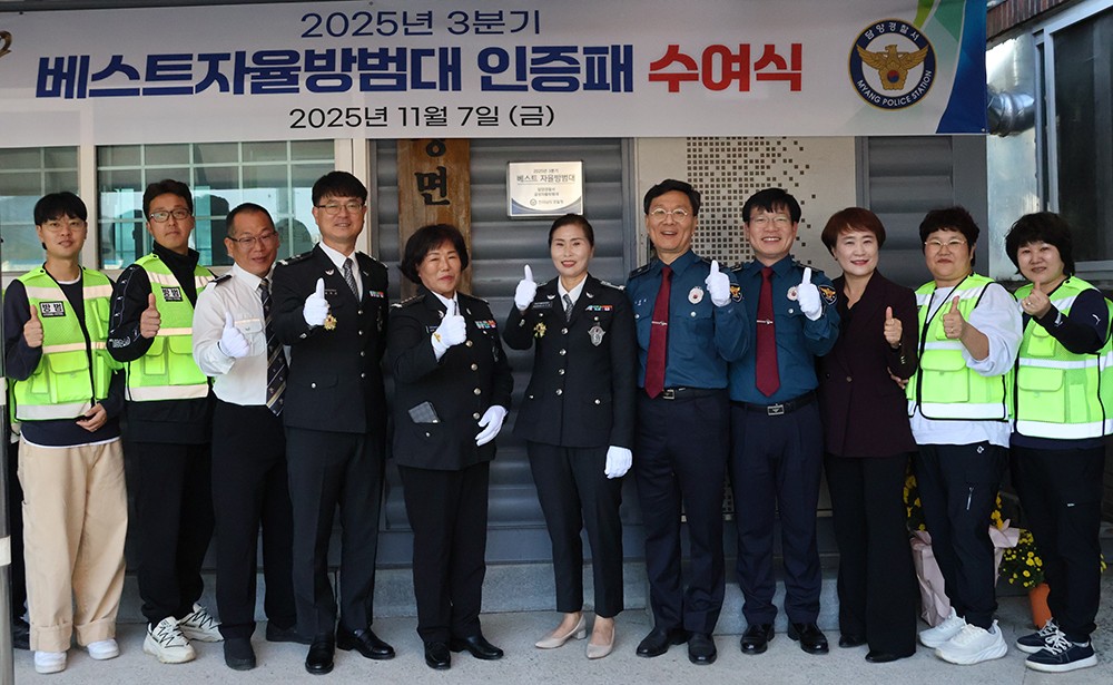 ´ã¾ç°æÂû¼´Â Áö³ 7ÀÏ ±Ý¼º¸é¿¡¼ ¾ç¼ö±Ù °æÂû¼Àå°ú À̿뼮 Àü³²°æÂûû »ýȰ¾ÈÀüºÎÀå, ¼Û±Í±Ù ±Ý¼º¸é ³²¼ºÀÚÀ²¹æ¹ü´ëÀå, À̼öÁ¤ ¿©¼ºÀÚÀ²¹æ¹ü´ëÀå µî 20¿©¸íÀÌ Âü¼®ÇÑ °¡¿îµ¥ Àü³²°æÂûûÀå ¸íÀÇÀÇ ÀÎÁõÆÐ¿Í °¨»çÀåÀ» ¼ö¿©Çß´Ù.