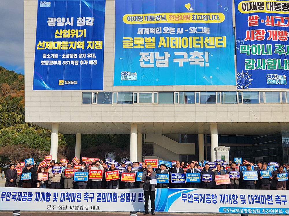 ¹«¾È±¹Á¦°øÇ× È°¼ºÈÃßÁøÀ§¿øÈ¸¿Í ¹«¾È±º »çȸ´Üü, ±¤ÁÖ¡¤Àü³² ¿©Çà¾÷°è °ü°èÀÚ µî 500¿©¸íÀº 26ÀÏ Àü³²µµÃ» ¾Õ¿¡¼ °áÀÇ´ëȸ¸¦ ¿¾î ¡°Àü³²µµ´Â ´õ ÀÌ»ó Ã¥ÀÓÀ» ȸÇÇÇϰųª °á´ÜÀ» ¹Ì·çÁö ¸»°í Áï°¢ÀûÀÎ ¹«¾È°øÇ× Á¤»óÈ¿¡ ³ª¼¾ß ÇÑ´Ù¡±°í Ã˱¸Çß´Ù.