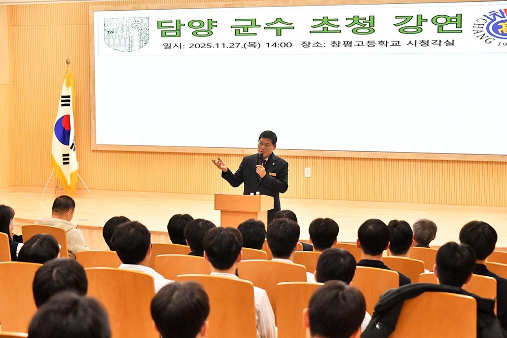 Á¤Ã¶¿ø ´ã¾ç±º¼ö°¡ Áö³´Þ 27ÀÏ Ã¢Æò°íµîÇб³ 3Çгâ ÇлýµéÀ» ´ë»óÀ¸·Î ¡®Ã»³âÀº ´ëÇѹα¹ÀÇ ¹Ì·¡¡¯¶ó´Â ÁÖÁ¦ÀÇ Æ¯º° °¿¬À» ÆîÃÆ´Ù. <´ã¾ç±º Á¦°ø>