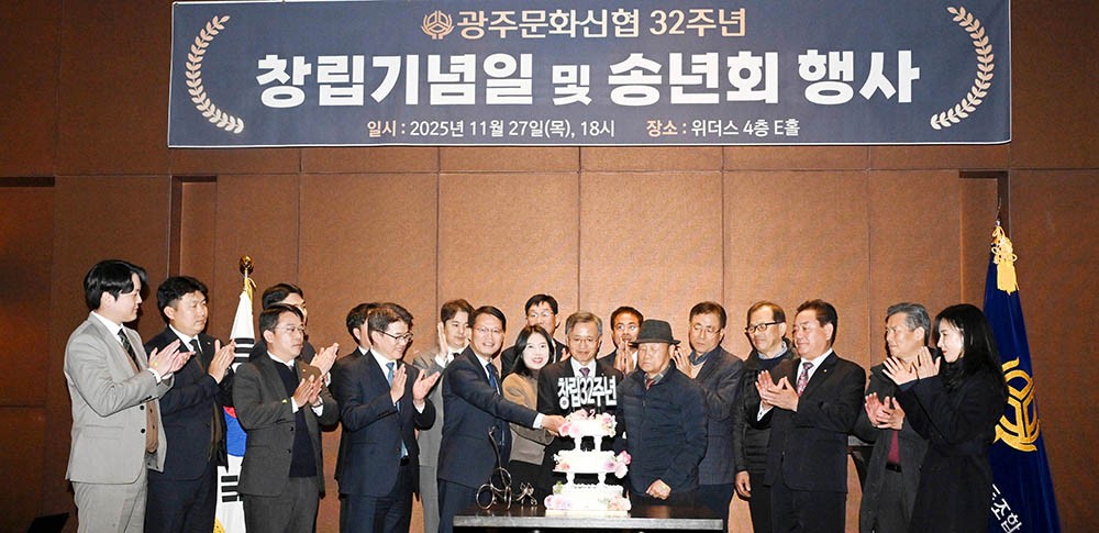 ±¤ÁÖ¹®È½ÅÇù ⸳ 32Áֳ⠱â³ä½ÄÀÌ Áö³ 27ÀÏ ¼±¸ ¿þµù±×·ìÀ§´õ½º ±¤ÁÖ¿¡¼ ¿·Á Á¶ÇÕ¿ø°ú ÀÓÁ÷¿øµéÀÌ ±â³ä ÄÉÀÍÀ» ÀÚ¸£°í ÀÖ´Ù./±è¾Ö¸® ±âÀÚ¡¤Á¶¿µ±Ç ÀÎÅϱâÀÚ