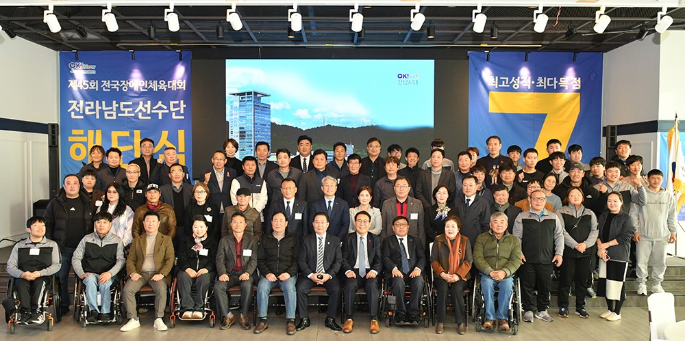 3ÀÏ ¿¸° Á¦45ȸ Àü±¹Àå¾ÖÀÎüÀ°´ëȸ Àü³²¼±¼ö´Ü ÇØ´Ü½Ä¿¡¼ Âü¼®ÀÚµéÀÌ ±â³äÃÔ¿µÀ» ÇϰíÀÖ´Ù. <Àü³²µµÀå¾ÖÀÎüÀ°È¸ Á¦°ø>