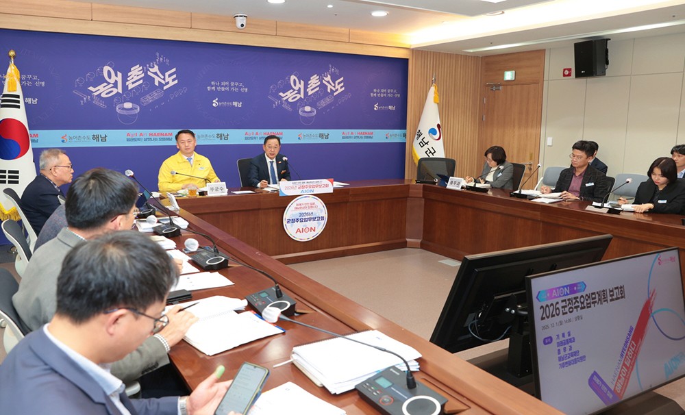 ÇØ³²±ºÀº Áö³ 1ÀϺÎÅÍ 26°³ ºÎ¼¿Í 3°³ Ã⿬±â°üÀÌ Âü¿©ÇÑ °¡¿îµ¥ ¡®2026³â ÁÖ¿ä¾÷¹«°èȹ º¸°íȸ¡¯¸¦ °³ÃÖÇß´Ù. <ÇØ³²±º Á¦°ø>