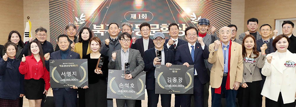 À̳¯ Çà»ç¿¡´Â ¹®ÀÎ ºÏ±¸Ã»ÀåÀ» ºñ·ÔÇØ ºÏ±¸ÀÇȸ °ü°èÀÚ, ¹®Çаè Àλç, ¼ö»óÀÚ¿Í ÁֹΠµî 100¿©¸íÀÌ Âü¼®Çß´Ù.