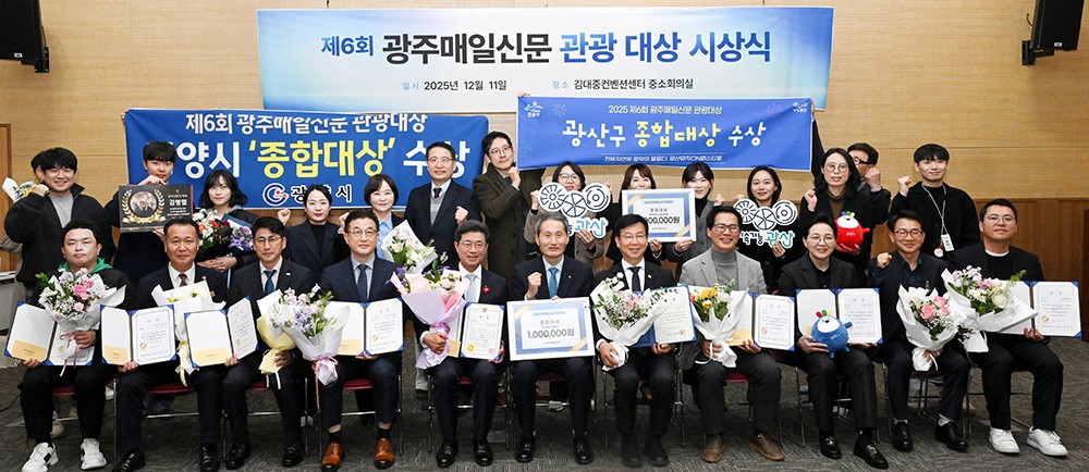Áö¿ª °ü±¤ ¿ì¼ö»ç·Ê¸¦ Á¶¸íÇÏ´Â ¡®Á¦6ȸ ±¤ÁÖ¸ÅÀϽŹ® °ü±¤´ë»ó¡¯ ½Ã»ó½ÄÀÌ 11ÀÏ ¿ÀÈÄ ±¤ÁÖ ±è´ëÁßÄÁº¥¼Ç¼¾ÅÍ Áß¼ÒȸÀǽǿ¡¼ ¿·È´Ù./±è¾Ö¸® ±âÀÚ¡¤Á¶¿µ±Ç ÀÎÅϱâÀÚ