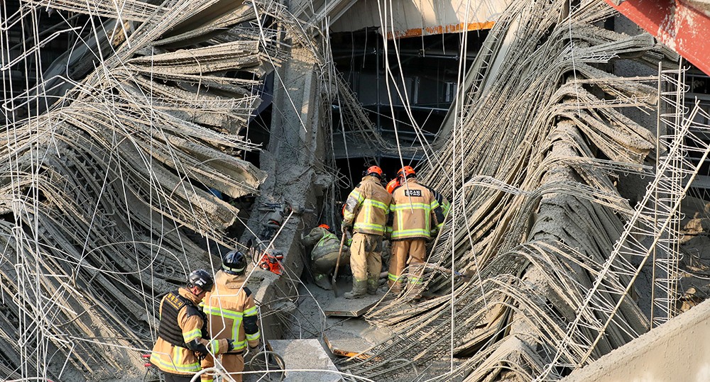 ºØ±« »ç°í´Â ÄÜÅ©¸®Æ®¸¦ Ÿ¼³Çϰí ÀÖ´ø 2Ãþ ¿Á»ó¿¡¼ ½ÃÀ۵ŠÁö»óÀÇ ÄÜÅ©¸®Æ®, ö±Ù ±¸Á¶¹°±îÁö ¹«³Ê¶ß·È´Ù. ÀÌ »ç°í·Î Àüü ÀÛ¾÷ÀÚ 90¿©¸í Áß 4¸íÀÌ ÀÜÇØ¿¡ ±ò·È´Ù.