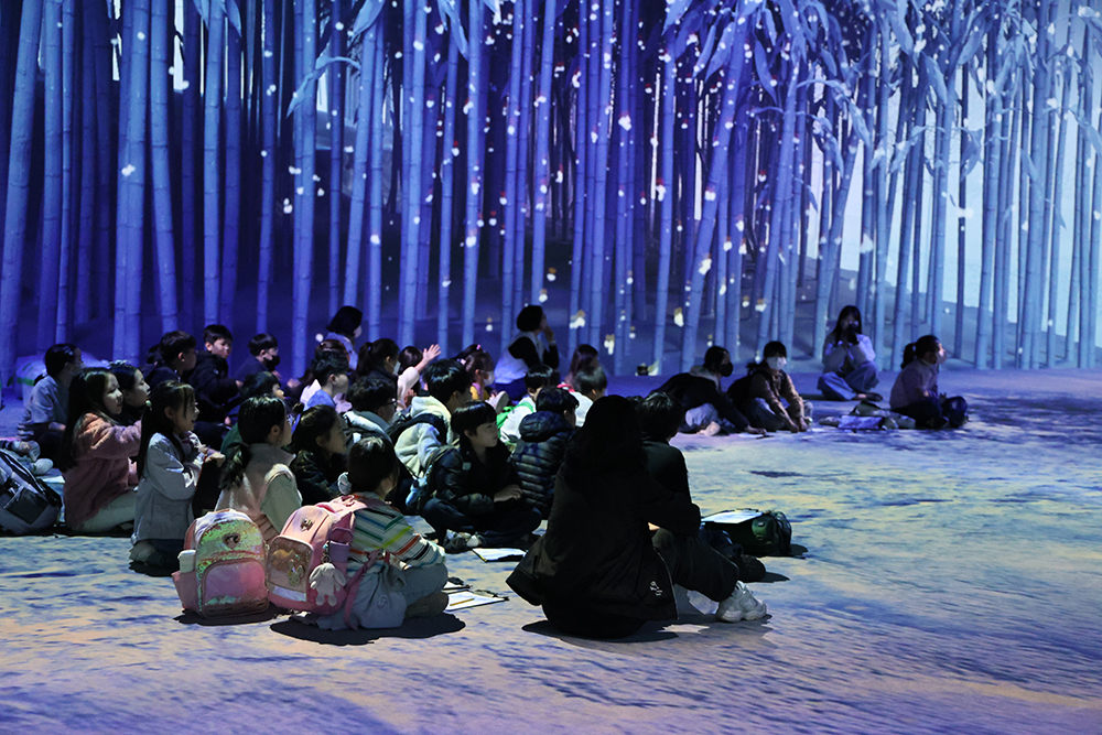 µðÁöÅÐ ¾ÆÆ®Á¸Àº ±æÀÌ 60mÀÇ ÃÊ´ëÇü ÆÄ³ë¶ó¸¶ ½ºÅ©¸°À» °®Ãá ¸ôÀÔÇü ¹Ìµð¾î Àü½Ã °ø°£ÀÌ´Ù. °³°ü ±â³äÀÛ ¡®ÈëÀÇ ±â¾ï, ºûÀ¸·Î ÇǾ´Ù¡¯´Â ¹«µî»ê°ú ȼø Àûº® µî ±¤ÁÖ¡¤Àü³²ÀÇ ÀÚ¿¬°æ°üÀ» »ç°èÀý º¯È ¼Ó¿¡ ´ã¾Æ³»°í, µµÀÚÀÇ Áú°¨°ú ±¤ÅÃÀ» 3D ¿µ»óÀ¸·Î ±¸ÇöÇß´Ù. »ó¿µ ÀÌÈÄ¿¡´Â °ü¶÷°´ÀÌ Âü¿©ÇÒ ¼ö ÀÖ´Â ÀÎÅÍ·¢Æ¼ºê ÄÜÅÙÃ÷µµ ¸¶·ÃµÆ´Ù.