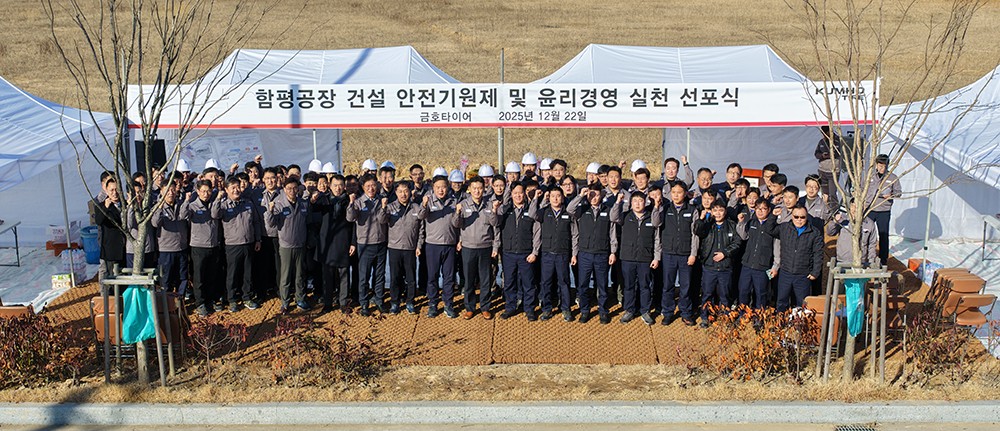±ÝȣŸÀ̾î´Â 22ÀÏ ÇÔÆò°øÀå °Ç¼³°ø»çÀÇ ¹«»ç°í¡¤¹«ÀçÇØ¸¦ ¿°¿øÇÏ´Â ³ë»ç ÇÕµ¿ ¾ÈÀü±â¿øÁ¦ ¹× À±¸®°æ¿µ ½Çõ ¼±Æ÷½ÄÀ» ½Ç½ÃÇß´Ù. <±ÝȣŸÀ̾î Á¦°ø>